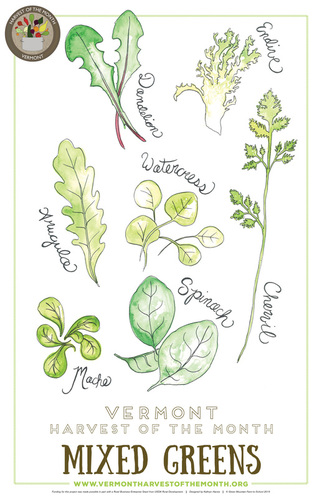 Mixed Greens: There are a wide variety of salad greens available in Vermont, spanning across several plant families, each bearing a unique history and taste. The versatility of greens, in flavor, shape and application, is enormous! They can accompany any type of dish and, many varieties can be eaten raw or cooked. No matter what the season, fresh greens can end up on your plate. For more information: http://www.vermontharvestofthemonth.org/may-2022–mixed-greens.html